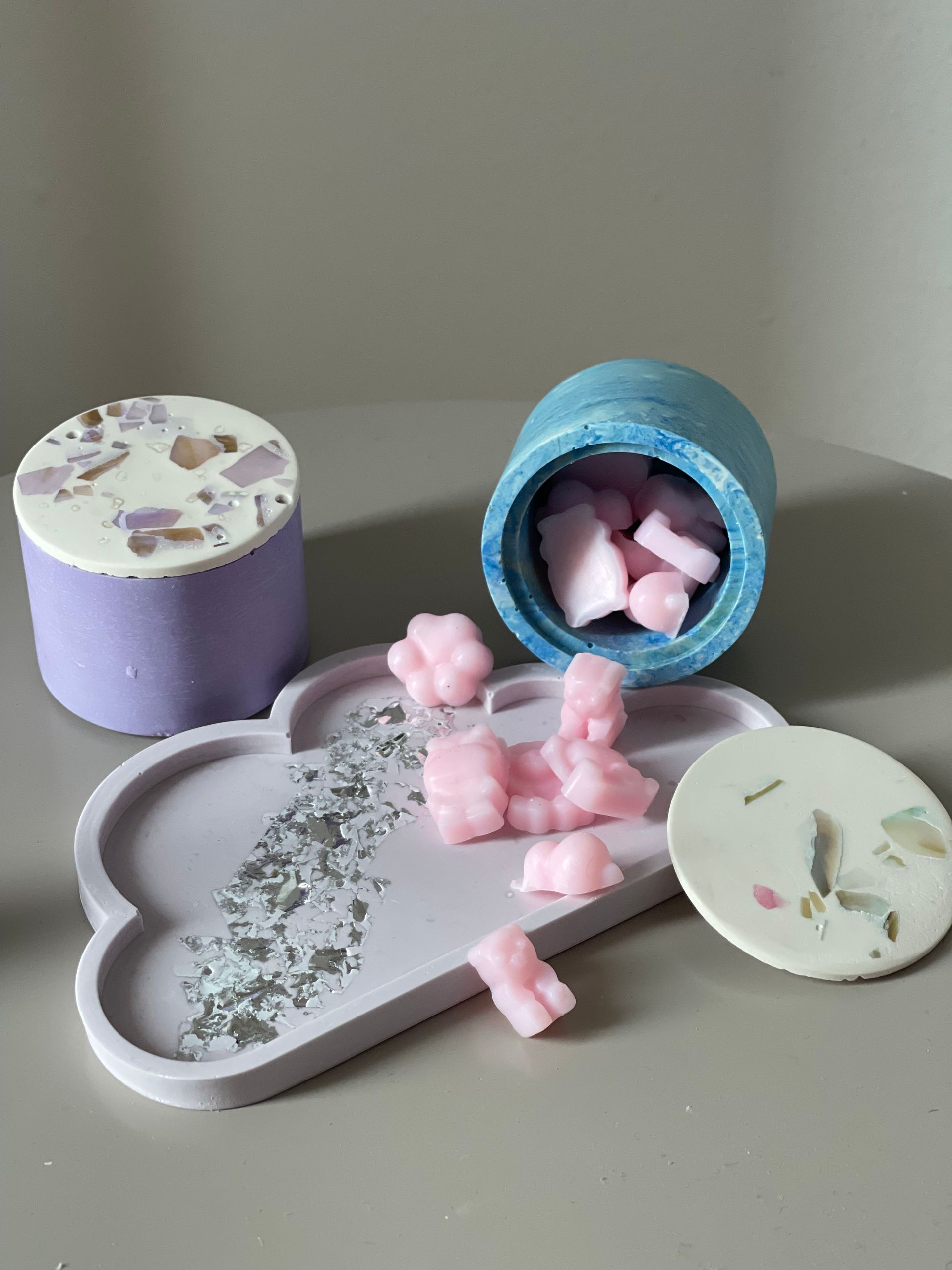 Nella continua ricerca della perfezione mi sono resa conto che colare le candele direttamente nel vasetto in Jesmonite® era un peccato in quanto magari la mia scelta della fragranza o del colore della candele non incontrava quella del cliente.